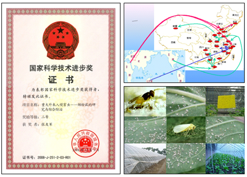 (1)重大外来入侵害虫—烟粉虱的研究与综合防治,2008年国家科技进步二等奖
