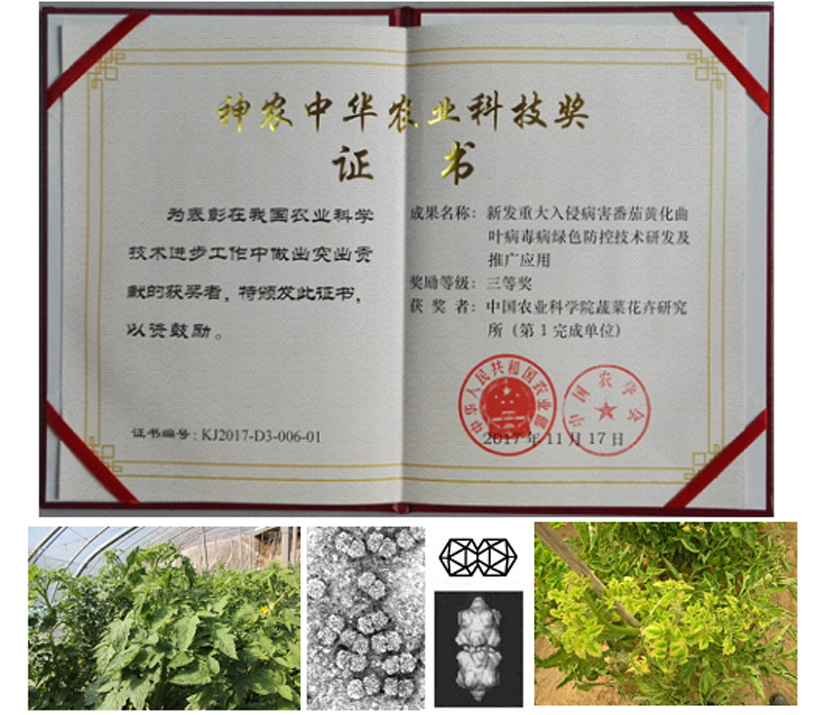 (3)新发重大入侵病害番茄黄化曲叶病毒病绿色防控技术研发及推广应用,2017年中华农业科技三等奖