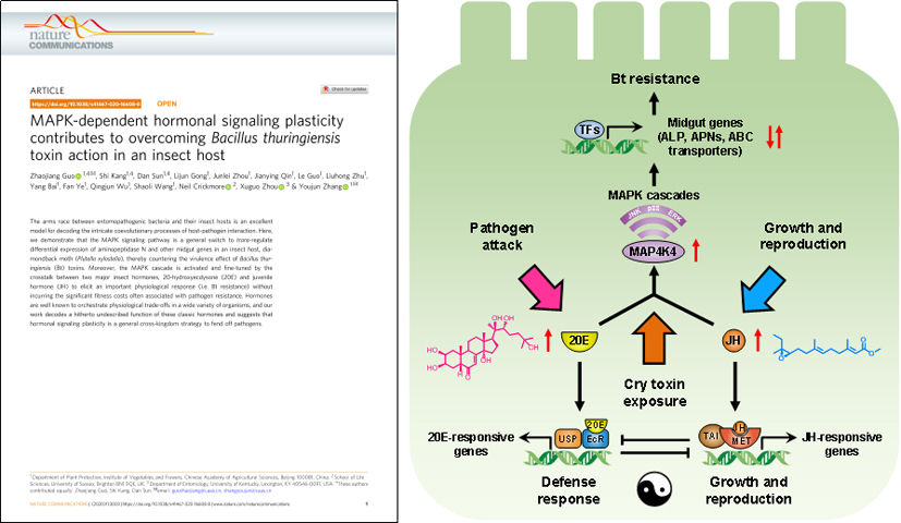 (1)Guo, Z., Kang, S., Sun, D., et al. MAPK-dependent hormonal signaling plasticity contributes to overcoming Bacillus thuringiensis toxin action in an insect host. Nature Communications, 2020, 11(1): 3003.