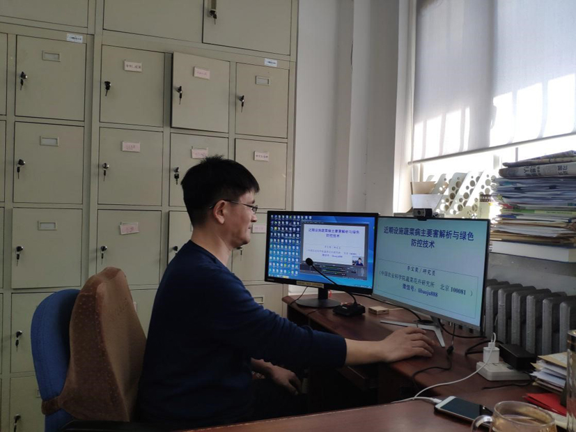 为了做好直播,李宝聚购置了专业的摄像头和麦克风,精心制作课件,在中国农学会“抗疫情、助春耕、保供给公益直播课”的平台上以“近期设施蔬菜主要病害解析与绿色防控技术”为题开启了自己的直播首秀。李宝聚通过微信视频等多种形式,对山东寿光、山东兰陵、内蒙古赤峰等多地进行了设施蔬菜化肥农药减施增效技术指导,在设施蔬菜主产区为“菜篮子”工程的稳定发展保驾护航。