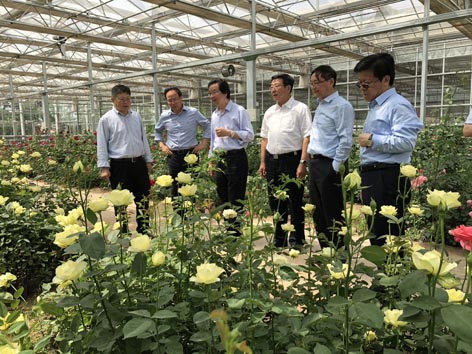 中国农科院办公室主任高士军、基建局局长刘现武、成果局局长王述民、后勤服务中心主任卢玉明,蔬菜花卉所副所长张友军等陪同调研与观摩。