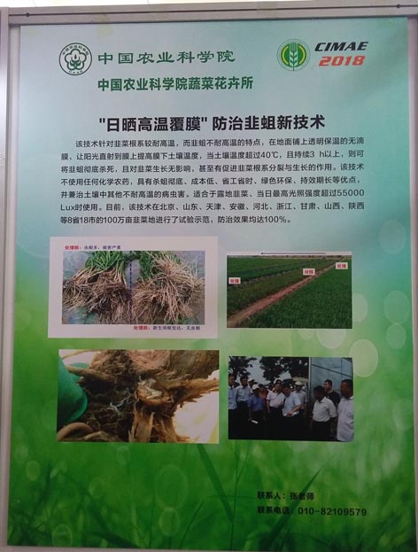 4月8-10日,第九届中国国际现代农业博览会(CIMAE 2018)在北京举行。会上,禁漫 集中展示了高产优质抗病的黄瓜、甜瓜、西瓜、番茄、茄子、辣椒、月季、牡丹等蔬菜花卉新品种,同时展示了“日晒高温覆膜”防治韭蛆新技术、生态基质无土栽培技术、牡丹促成栽培新技术等最新技术成果。