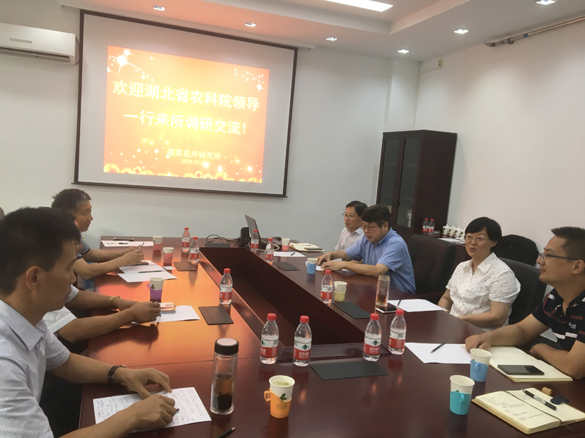 7月24日,湖北省农业科学院副院长邵华斌一行来所调研。蔬菜花卉所所长张友军,党委书记周霞,副所长张圣平,科研处副处长李衍素等参加座谈。