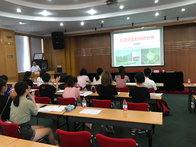6月下旬,我所发布了夏令营通知,共有46名本科三年级学生报名,最后选择了20名学生参加本次活动。7月30日上午夏令营开营,副所长卢林纲致欢迎词,科研处副处长李蕾作禁漫 介绍报告。张扬勇研究员,钱伟、柴阿丽副研究员分别就甘蓝、叶菜育种技术、蔬菜病害智能诊断等做了深入浅出的学术报告。下午参观了我所荣誉室、标本室、分子育种课题组、牡丹课题组试验温室和种质资源中期库。7月31日参观了南口中试基地。8月1日上午首先参观了检测中心实验室,随后在大报告厅举行了意向导师见面会,在轻松愉快的氛围中学生们和意向导师进行了交流互动。见面会后,副所长张圣平致闭营讲话,并为同学们颁发了结业证书,随后与同学们合影留念,宣布本次夏令营圆满结束。