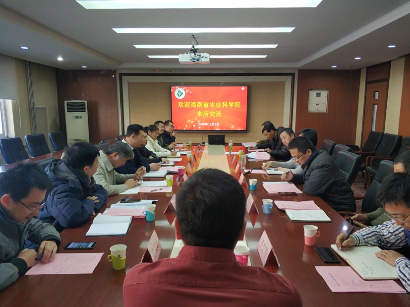 张春义作为第二批“援琼干部”于2019年10月下旬赴海南省农科院挂职副院长两年。上任一月余即带队来所交流,周霞书记代表全所对客人的到来表示热烈欢迎。与会人员共同观看了蔬菜花卉所为庆祝建所60周年制作的“不忘初心 砥砺前行”宣传视频,陈贻诵处长等对我所多年来获得的累累科研硕果表示由衷钦佩。