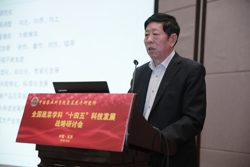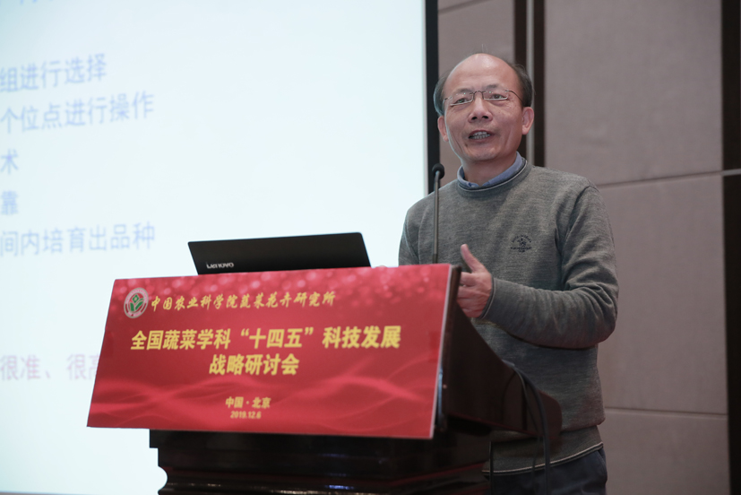 蒋丹平副司长代表科技部农村司高度肯定了以中国农科院蔬菜所牵头集中全国蔬菜学科优势力量协同推进我国蔬菜产业绿色高质量发展的意义。他强调立足于当前供给侧改革和我国现阶段发展特征,在面向2035国家中长期发展规划-科技部36个专题中第一次将农业农村和食品两个领域分别独立开展预测和规划运营工作。针对蔬菜学科的规划编制工作将以乡村振兴战略为首要任务,即保障粮食安全和重要农产品供给。按照目标导向、问题导向,全产业链设计从国家层面解决关键核心问题,为十四五科技计划提供重大项目布局理念支撑。