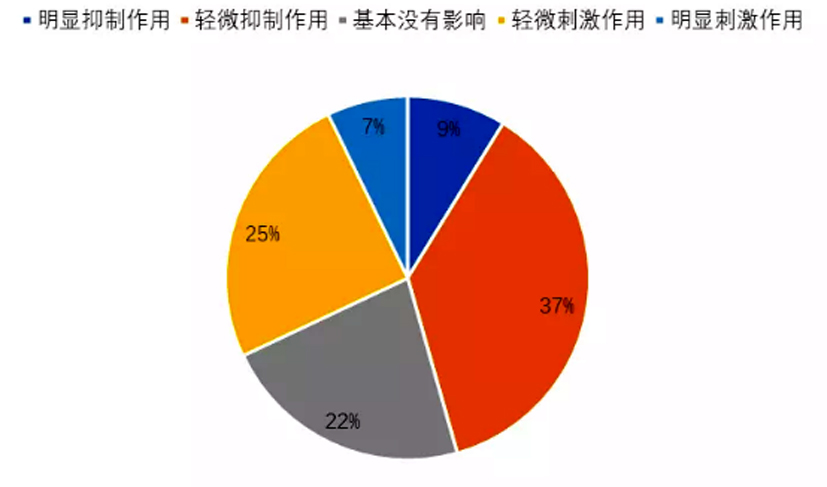 在短期内疫情对马铃薯消费将产生何种影响问题上,37%的人选择轻 微刺激作用,34%的人选择轻微抑制作用,14%的人选择基本没有影响,选择明显抑制和明显刺激的共占 15%。