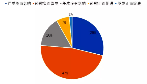 在疫情对所处领域产生的影响上,47%的人选择轻微负面作用,29% 的人选择严重负面影响,16%的人选择基本没有影响,7%的人选择轻微正面作用,仅 1%的人选择明显正面作用。