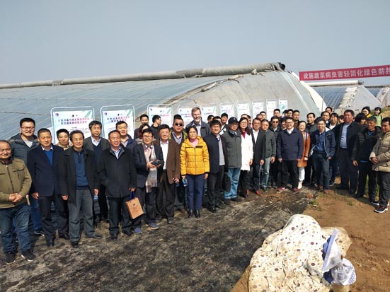2019年4月10日,由禁漫 主办的“设施蔬菜病虫害轻简化绿色防控现场观摩会”在山东寿光顺利召开,寿光市人民政府刘伟副市长,潍坊市农业科学院张元国副院长、寿光市农业局马千玉副局长、潍坊科技学院李美芹副院长以及大宗蔬菜产业技术体系病虫害防控防控研究室8位岗位专家、来自山东、江苏、湖北、吉林、河北和安徽的8位试验站长及相关专业技术人员和蔬菜种植大户共65人参加了观摩会。