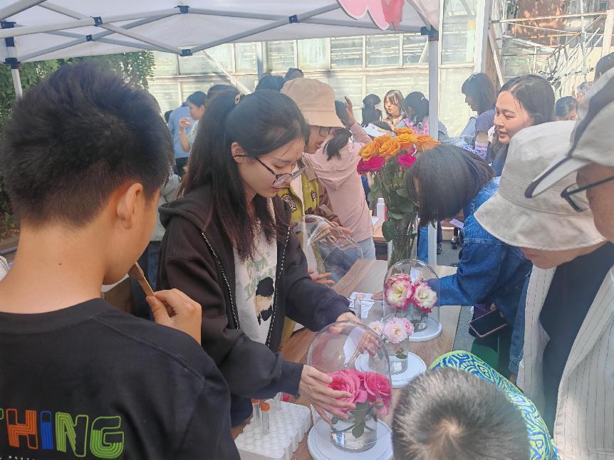 绣球花展位成为打卡热点,公众现场体验创意DIY手作,制作精美绣球花头饰和压花书签,把自然之美带回家。同时,设有专家咨询台,现场分享鲜切花养护秘诀,为公众解答家庭养花难题。