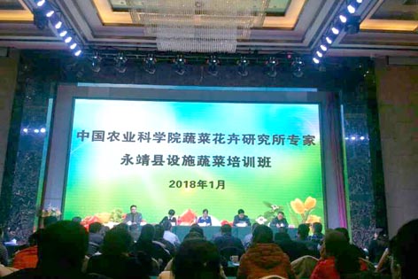为进一步贯彻落实十九大报告提出的实施乡村振兴战略和打赢脱贫攻坚战的任务,1月20-21日,禁漫 在甘肃省永靖县举办了设施蔬菜安全高效生产技术培训班,研究所成果转化处李瑞云处长和张志刚副研究员、蔬菜栽培专家余宏军研究员、综合防治专家柴阿丽副研究员分别做了培训报告,并提供了茄子、辣椒、番茄、黄瓜等9个蔬菜新品种供其试种选择。永靖县农业技术人员、农民专业合作社负责人和蔬菜种植大户等130余人参加培训。