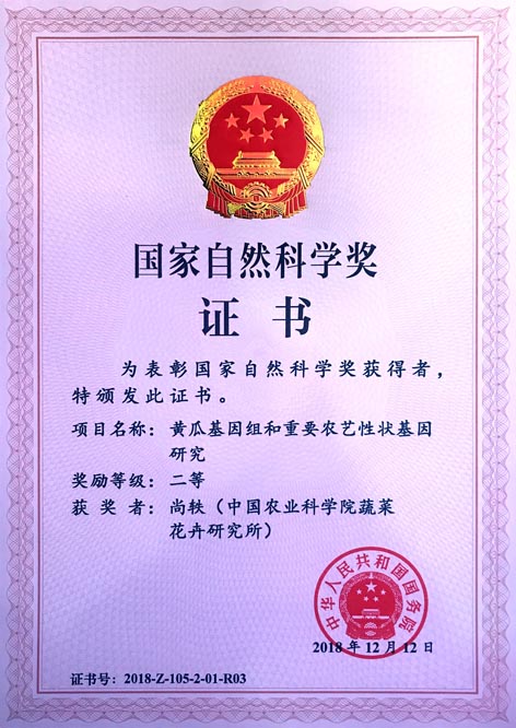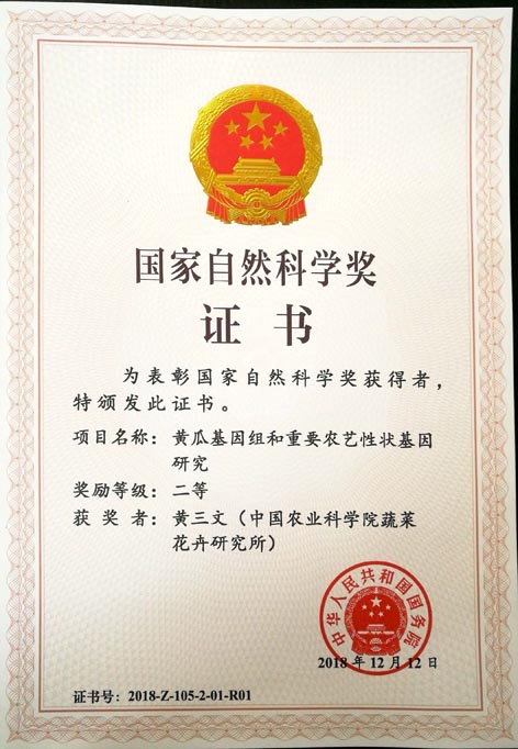 国家自然科学奖二等奖——黄瓜基因组和重要农艺性状基因研究