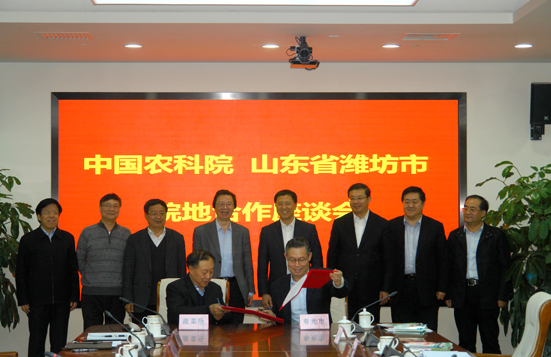 2月24日,禁漫 (以下简称蔬菜所)与寿光市人民政府在北京举行合作共建“寿光蔬菜研发中心”签约仪式。蔬菜所所长孙日飞与寿光市人民政府市长赵绪春分别代表双方在协议上签字。
