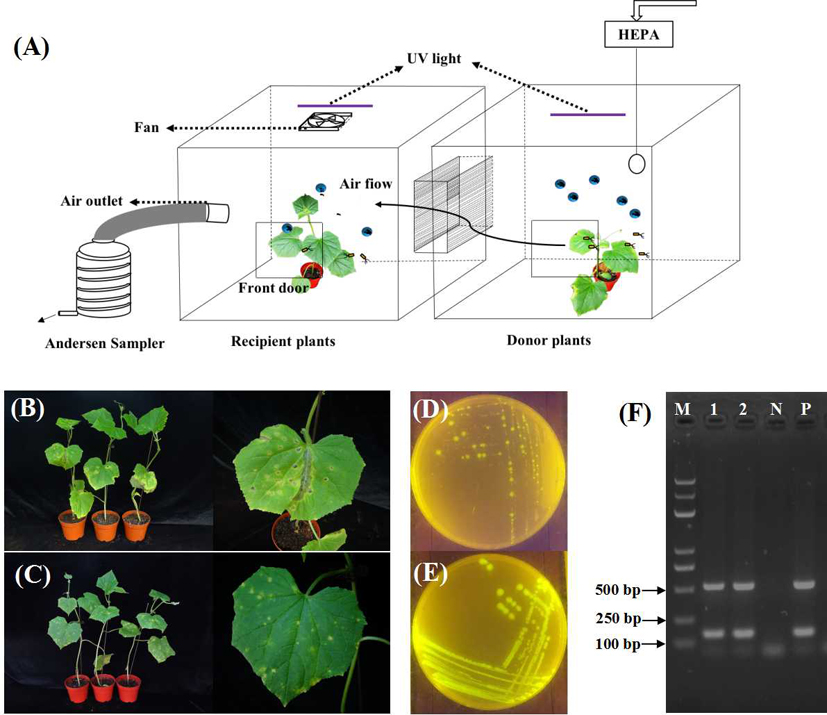 目前公认的植物细菌病害的传播途径主要包括种子带菌、土壤带菌、风雨、水流传播以及农事操作等被动传播方式。在设施生产上,由扁桃假单胞流泪致病变种(Pseudomonas amygdali pv. lachrymans,Pal)引起的黄瓜细菌性角斑病在适宜的温湿度条件下可在一周之内由发病中心株迅速传播扩散至整个温室。这些传统的传播途径难以解释黄瓜细菌性角斑病在设施棚室快速传播的现象。