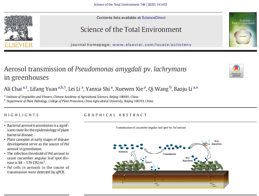 李宝聚团队国际上首次揭示气溶胶是植物病原细菌性病菌传播的有效途径