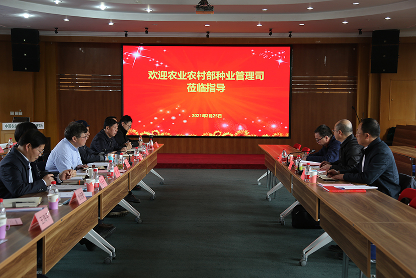 2月25日,农业农村部种业管理司张兴旺司长、品种创新处邹奎处长、畜禽种业处吴凯锋处长一行3人到禁漫 调研指导。方智远院士、所长张友军、所党委书记周霞出席会议。