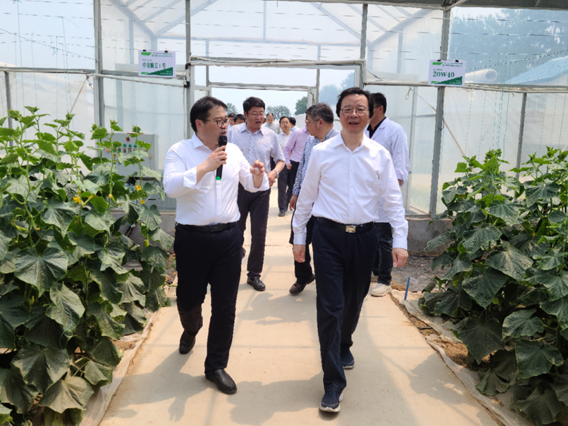 调研期间,刘伟副主任从研发中心的条件建设、科研服务、团队建设、成果转化等方面对研发中心的建设和运行情况进行了全面汇报;李宝聚研究员详细介绍了蔬菜病害防控创新团队依托研发中心实施“三创一体”的工作情况。唐华俊对研发中心建设、运行表示满意,强调要吸引更多的人才到研发中心工作。在研发中心试验基地,唐华俊深入田间地头,详细了解了茄子、甘蓝、番茄以及黄瓜育种情况。对在场科研工作者的辛勤劳动表示亲切慰问,并就新品种的选育、示范推广以及青花菜“卡脖子”等问题与各位专家进行了深入交流。