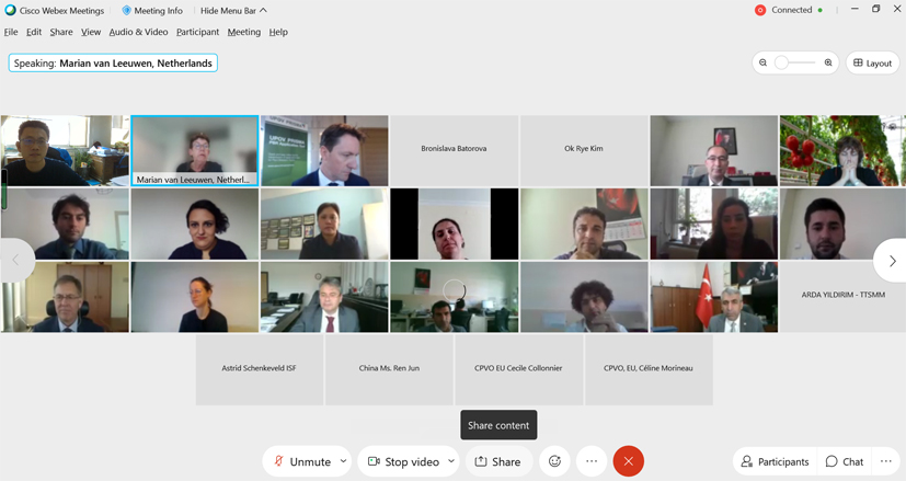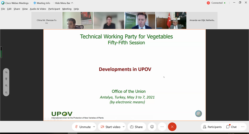 近日,国际植物新品种保护联盟(UPOV)第55届蔬菜技术工作组(TWV)会议在土耳其安塔利亚召开。受疫情影响,本届会议继续采用视频会议方式召开。会议由TWV主席Marian van Leeuwen女士(荷兰)主持,来自31个国家或组织的80名代表参加会议并交流。农业农村部植物新品种测试中心、北京分中心和上海分中心派员参会,北京分中心付深造博士和任君博士全程参加会议。