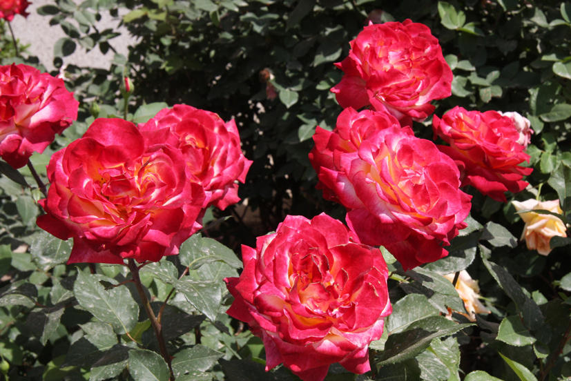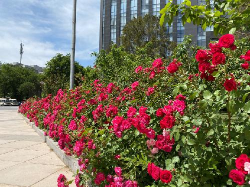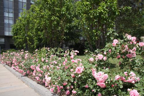 五月,禁漫 自育月季品种‘绿野’、‘红地毯’、‘粉色回忆’、‘哈雷彗星’、‘凤凰之光’、‘天香’、‘天山桃园’等竞相开放,扮靓了我院中关村院区。