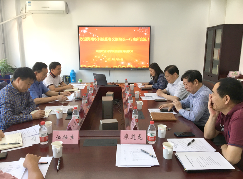 5月29日,海南省农科院副院长张春义、三亚研究院常务副院长刘光亮等一行到访蔬菜花卉所,就推动双方开展联合创新共同组建番茄研究团队进行座谈交流。副所长张圣平、大宗蔬菜产业技术体系首席科学家杜永臣等参加会议,科研处处长李蕾主持会议。