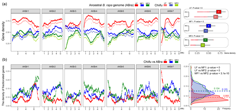 除此之外,本研究发现白菜种内分化过程中,基因偏向性丢失持续进行,并导致白菜亚基因组优势在继续扩大。上述结果进一步说明,除“两步演化”导致白菜亚基因组优势形成之外,基因组组成可能是导致亚基因组优势形成的另一个重要因素(图3)。