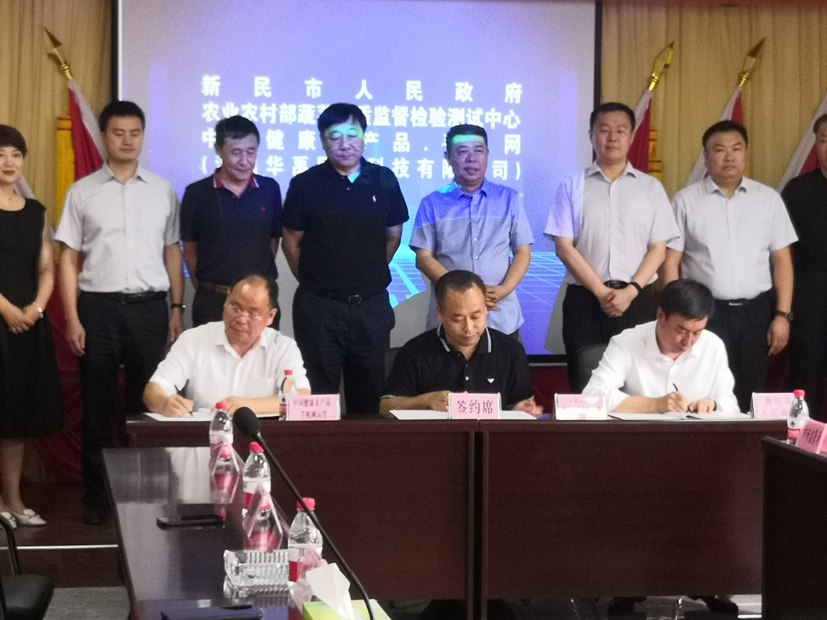为深入贯彻落实习近平总书记贺信精神和乡村振兴战略,按农业农村部农产品质量安全监管司关于“农产品质量安全检验检测为群众办实事”要求,6月26日,农业农村部蔬菜品质监督检验测试中心(北京)赴辽宁省新民市同新民市市政府、中国健康农产品.手机网共同签订三方战略合作协议并举行“农业农村部蔬菜品质监督检验测试中心(北京)新民工作站”授牌仪式,仪式由新民市副市长李犁主持。蔬菜质检中心主任徐东辉研究员、新民市市长张文哲、中国健康农产品•手机网首席执行官周文代表三方出席活动。