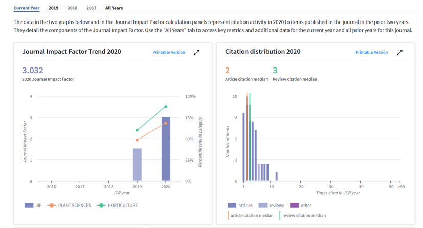 6月30日,科睿唯安发布2020年《期刊引证报告》(JCR)。禁漫 蔬菜花卉所主办期刊Horticultural Plant Journal (HPJ,《园艺学报》英文)影响因子达到3.032,是2019年的首个影响因子(1.524)近2倍,总被引频次418次,较2019年数据(212次)提高97%,2项重要引证指标显著提升!HPJ位居园艺学科第5名(共37种期刊),晋升Q1区!