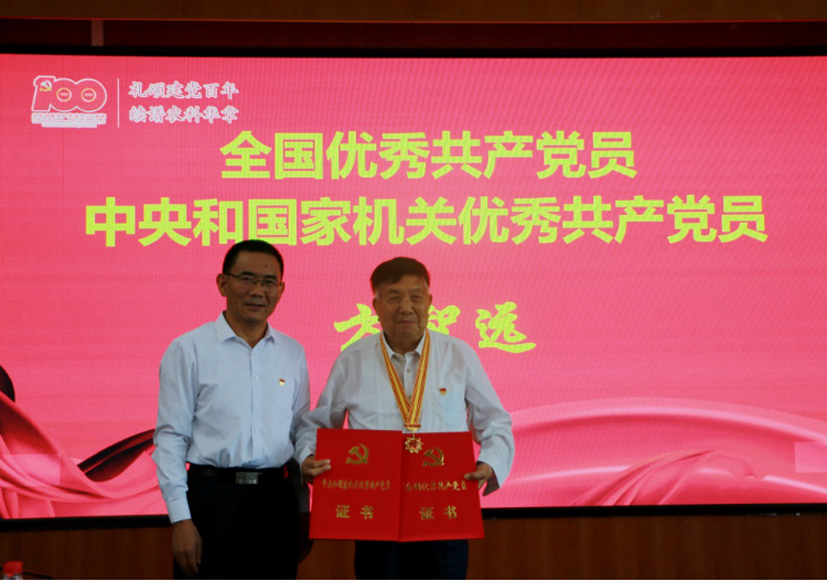 在专题组织生活会正式召开前,举行了“两优一先”表彰和颁奖仪式。张合成书记和黄伟忠组长分别向“全国优秀共产党员”方智远同志和“中央和国家机关先进基层党组织”组织蔬菜花卉所第二党支部颁发奖章证书和奖状。随后,张扬勇代表支部作上半年工作汇报和检视,详细介绍了支部和所在团队的党建工作、科研业务、成果转化工作开展情况,并对存在的问题及整改措施进行了检视和梳理。支部党员按照要求逐一发言,对照党史学习教育目标要求,谈感想、查问题,开展批评与自我批评。