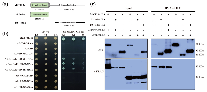 图2:MiCTL1a与拟南芥过氧化氢酶互作。
