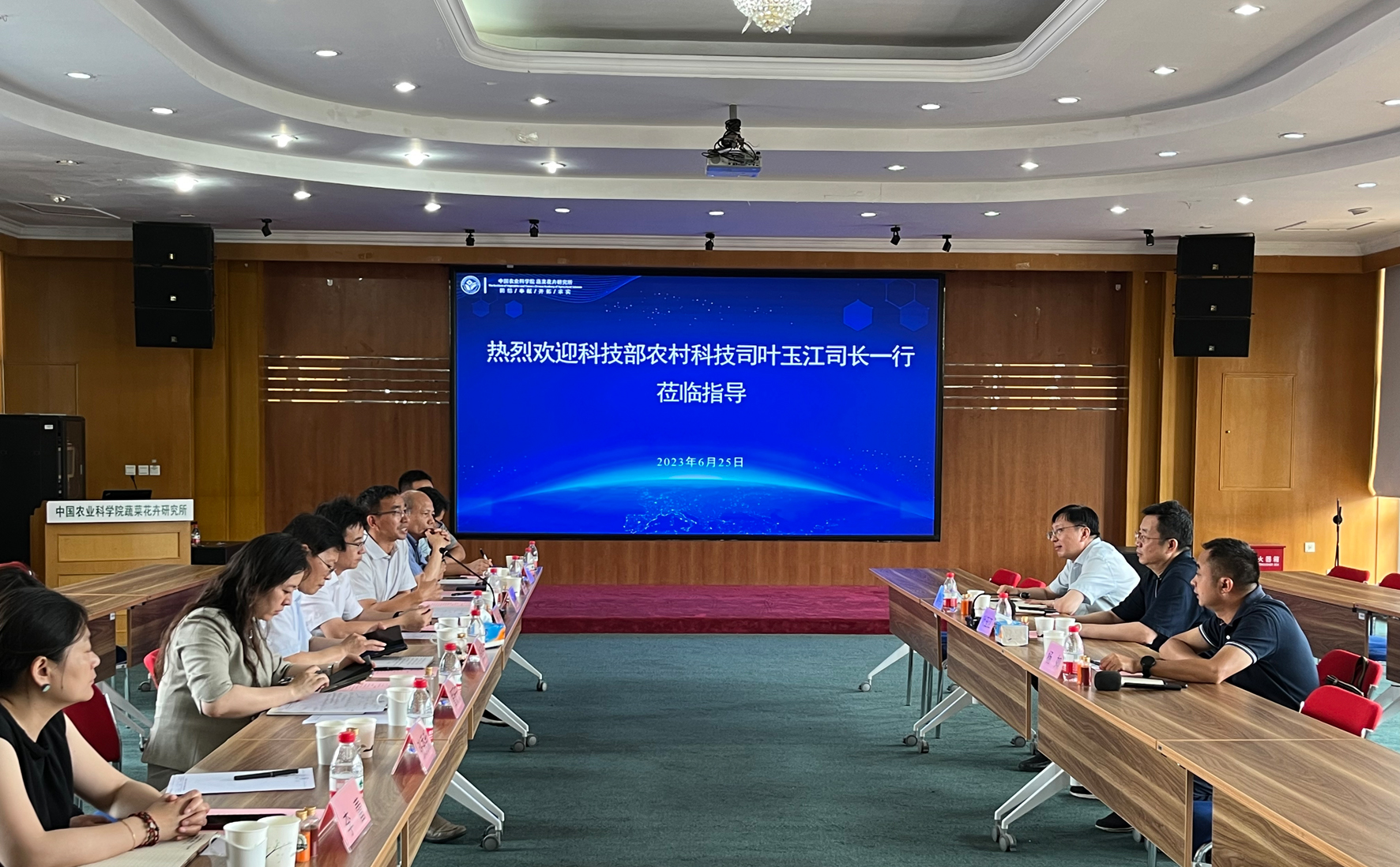 6月25日上午,科技部农村科技司叶玉江司长率队调研蔬菜花卉所,走进温室、实验室深度了解科研创新情况,并参加座谈研讨。张扬勇副所长主持会议。