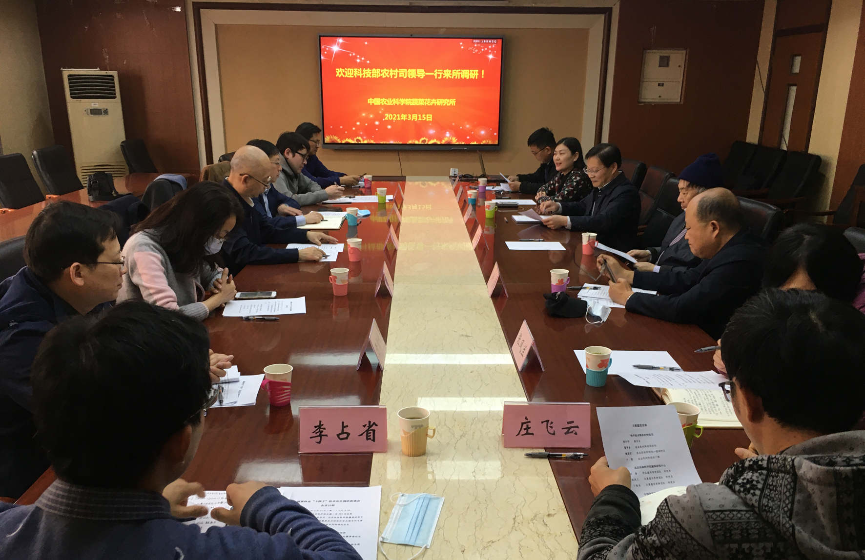 3月24日,农业农村部人力资源开发中心、中国农学会党委书记陈金发、研究咨询处处长韩忠超等一行到蔬菜花卉所调研指导。所长张友军主持座谈。