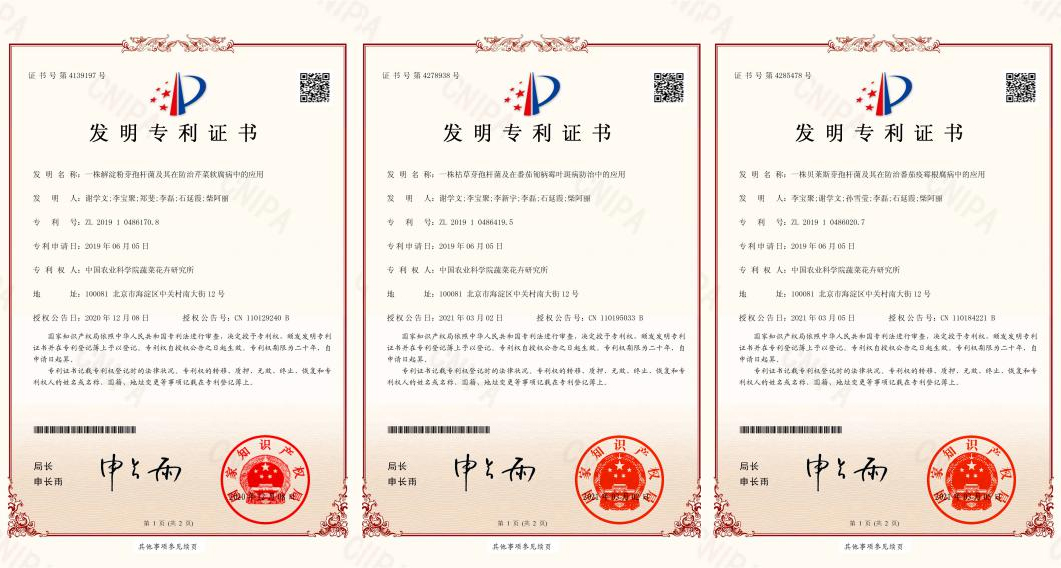• 2021-04-07 创新驱动发展——蔬菜病害防控创新团队喜获三项专利授权