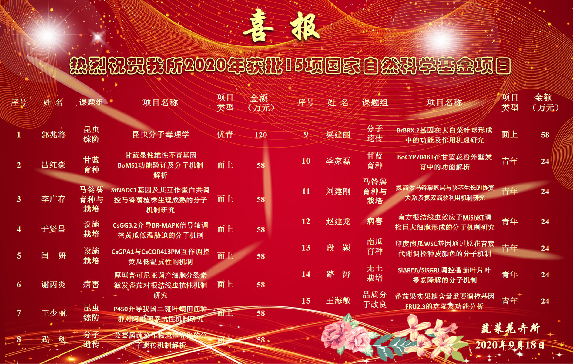 • 2020-09-18 我所2020年15个项目喜获国家自然科学基金资助