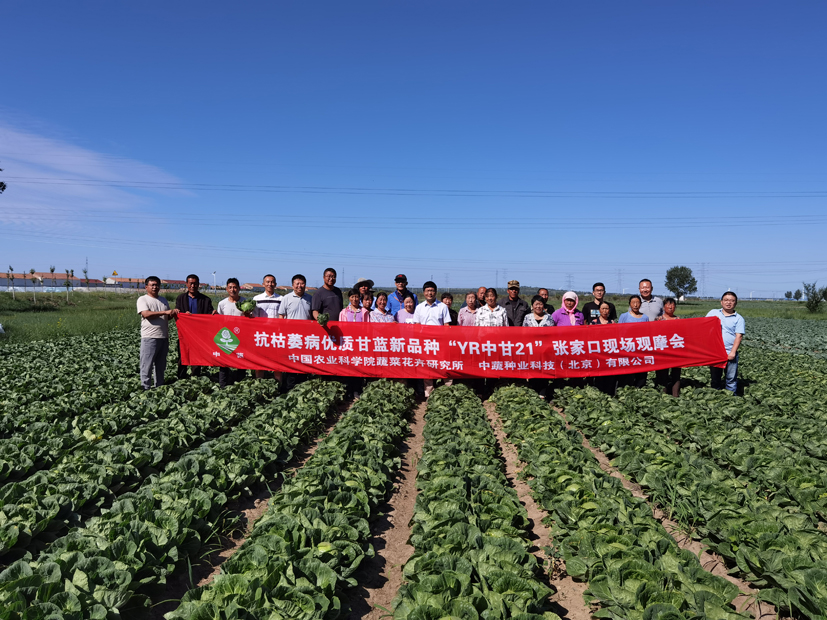 为推动科研成果的转化落地,解决重大流行性病害危害的产业难题,团队于7月7日和7月20日先后在甘肃定西和河北张北召开了现场观摩会,当地推广站、园艺站、农科院的专家及种子经销商、种植大户等70多人参与活动。根据几个试验点的综合结果,YR中甘21田间表现高抗枯萎病(发病率低于1%)、早熟(熟期约50天)、丰产(单球重0.8-0.9kg),球色亮绿、口感脆甜,价格普遍比国外“硬菜”品种高20-30%,受到大家的一致好评。未来2-3年内,YR中甘21将有望成为高原夏菜甘蓝的主栽品种,为菜农增收和乡村振兴做出贡献。