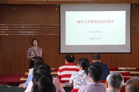 目前,研究所现有编外人员300余人,他们在管理、服务、科研、科辅等岗位上发挥着重要作用,是研究所持续健康发展的重要力量,今后研究所将继续加强编外人员管理,提高管理能力和水平。本次制度宣讲是深入贯彻落实研究所2018年工作重点任务,也是落实院所管理效益年的举措之一。