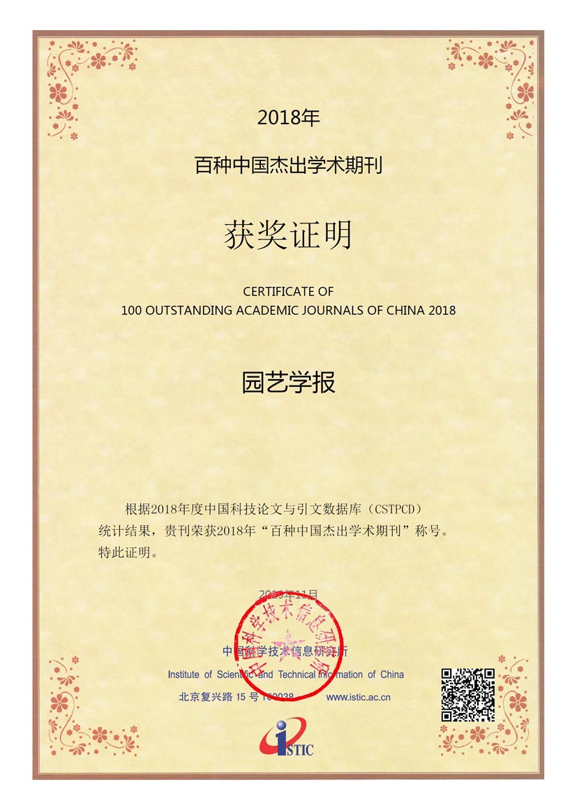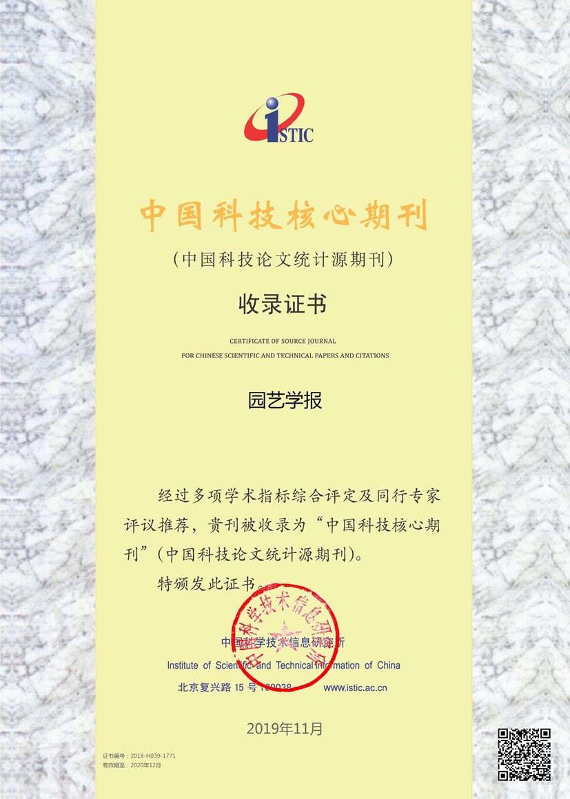 据中国科学技术信息研究所发布的《2019年版中国科技期刊引证报告(核心版)》统计结果,《园艺学报》核心总被引频次为4844,核心影响因子1.25,均稳居学科核心期刊第1位。