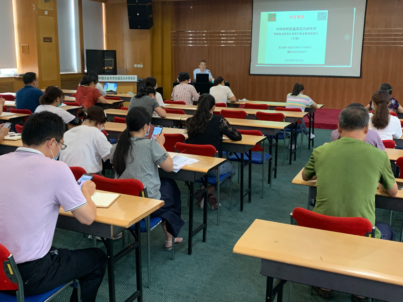 为更好贯彻落实“十三五”以来国务院办公厅、财政部、科技部制定的关于中央财政经费管理相关政策,加强中央财政科技计划管理,顺利完成国家重点研发计划项目结题审计验收和绩效评估,2020年7月30日上午9点,在蔬菜所实验楼大报告厅举办了“国家重点研发计划项目资金管理培训会”,培训会由财务处陈芳处长主持,特邀华京会计师事务所吴丙智所长主讲。