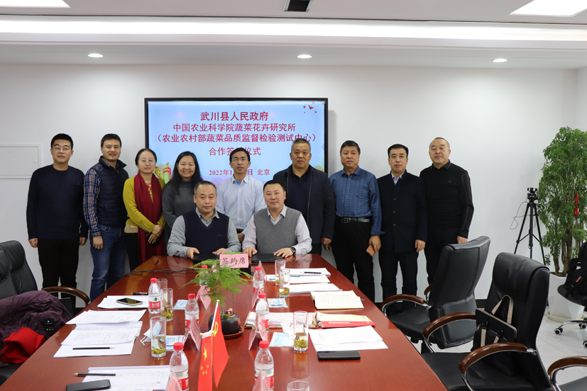为深入贯彻落实习近平总书记“四个面向”重要指示精神, 1月19日,农业农村部蔬菜品质监督检验测试中心(北京)(以下简称中心)与内蒙古武川县人民政府在北京签署科技合作协议。中心常务副主任徐东辉研究员和武川县副县长阿古拉分别代表双方签字。