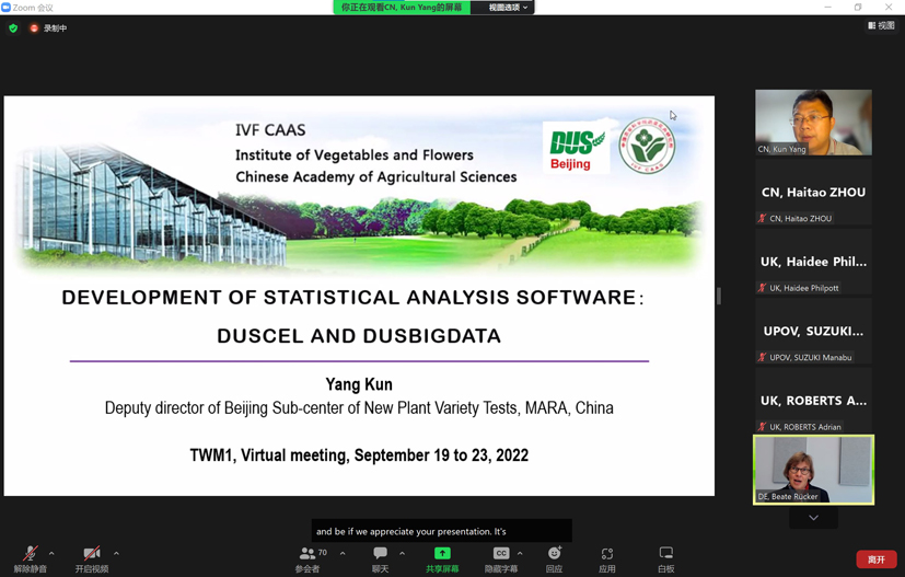 近日,国际植物新品种保护联盟(UPOV)第一届测试方法与技术工作组(TWM)会议在日内瓦召开。受疫情影响,本届会议在线方式召开。德国Beate Rücker(贝亚特 吕克尔)女士主持会议,来自20多个国家或组织的80名代表参加会议,来自农业农村部植物新品种测试中心和分中心的21名中国代表参加会议。禁漫 派植物新品种测试课题组杨坤副主任、任君参加会议。