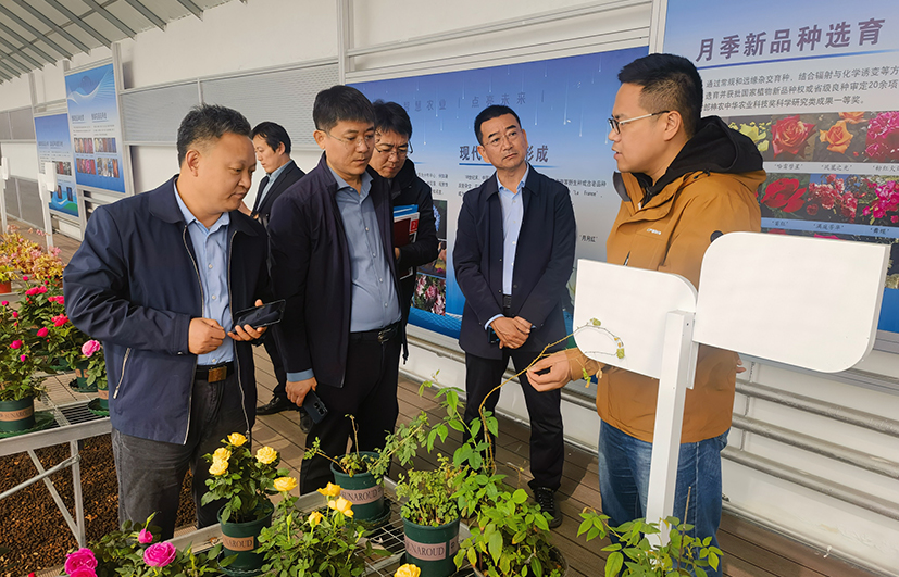 调研组一行参观考察南区展示温室,详细了解蔬菜花卉所的发展历程、科技创新和成果转化工作开展情况。
