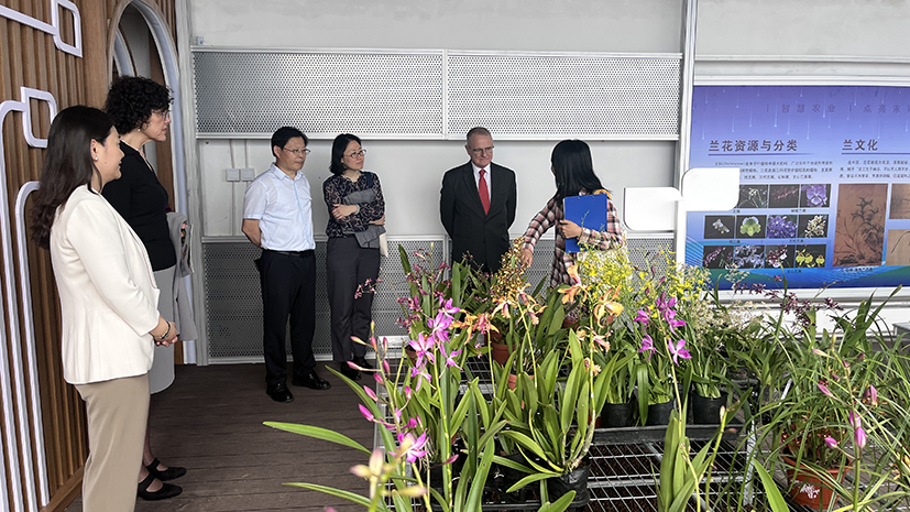 期间,法诺司长一行来到研究所南区展示温室实地考察,张圣平副所长对法诺司长一行的到访表示热烈欢迎,李蕾处长介绍了我所总体情况和国际合作概况,无土栽培课题组李强副研究员向来宾展示了设施园艺装备,对此表现出浓厚的兴趣。在张圣平副所长的陪同下,法诺司长一行还参观了花卉展示园,花卉种苗与月季育种课题组赵鑫副研究员、花卉栽培课题组袁素霞副研究员详细介绍了我所花卉资源与品种选育的情况,我所花卉育种、花期调控技术等给法诺司长留下了深刻美好的印象。来宾一行听取了薄凯亮研究员、李占省研究员关于茄科、葫芦科、十字花科等蔬菜种质资源与新品种选育的情况介绍。