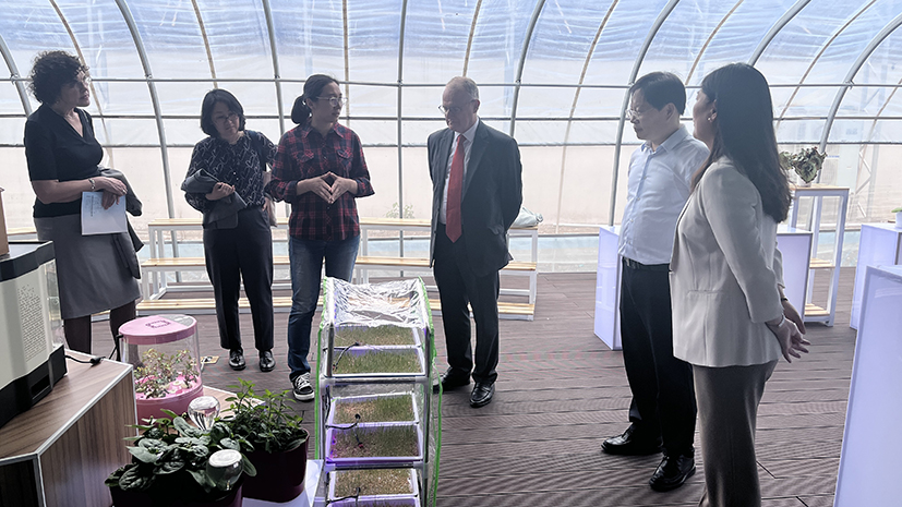 4月26日,欧盟农业和农村发展总司研究与创新司司长法诺一行到禁漫 访问,院国际合作局副局长翟琳、蔬菜花卉所副所长张圣平、科研处处长李蕾等出席活动。