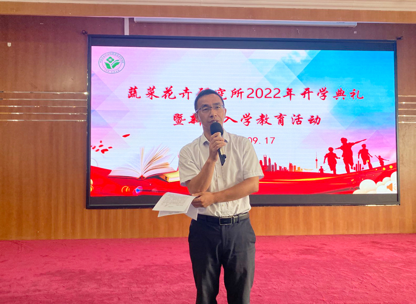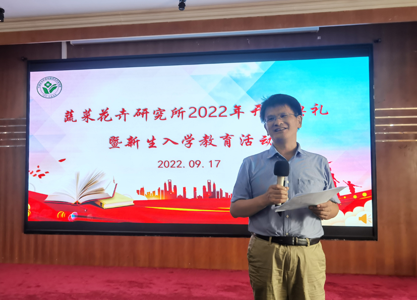 张友军所长开学典礼致辞,对新生的到来表示热烈的欢迎。他介绍了我所学科建设的优势特色及取得的新进展新成绩,鼓励同学们在科研道路上志存高远、努力奋斗,注重发现问题、解决问题的科研思路训练,加强与导师及学长的沟通,净化生活圈及人际交往平台,发展健康的兴趣爱好。他对同学们提出“今天你们以蔬菜所为荣,明日蔬菜所以你们为荣”的殷切期望。