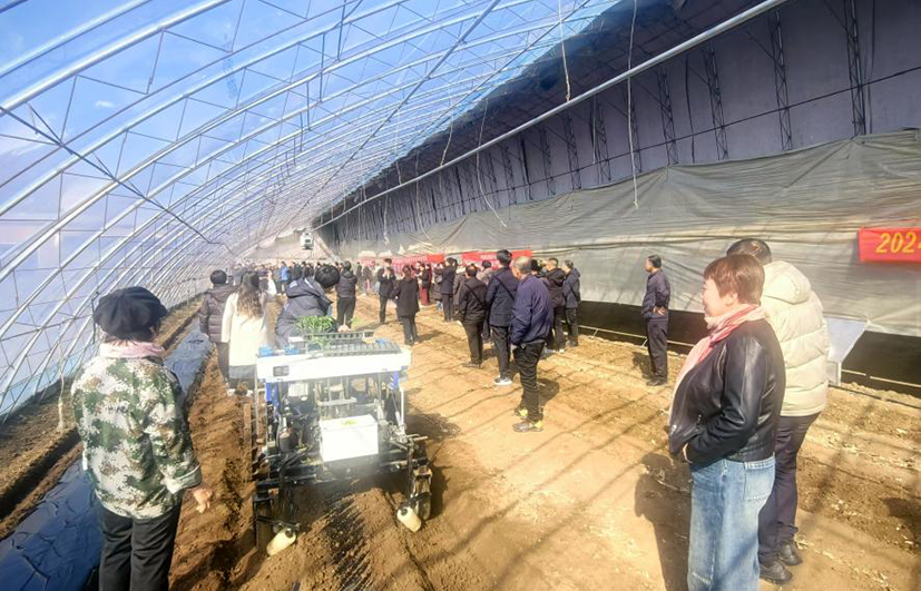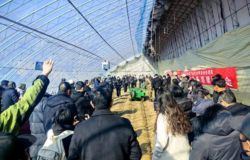 专家团在辽宁海城市举办日光温室蔬菜机械化作业现场观摩会,现场展示撒肥、耕整地、起垄和秧苗移栽、自动打药等机械化与无人驾驶装备,来自沈阳农业大学、鞍山市和海城市的领导专家,以及园区、大户和合作社代表等80余人参加。蔬菜产业专家团辽宁北票工作站站长孙周平教授现场讲解日光温室蔬菜东西垄宜机化栽培模式研究与应用情况,推动农机农艺融合,提升设施蔬菜生产效率。